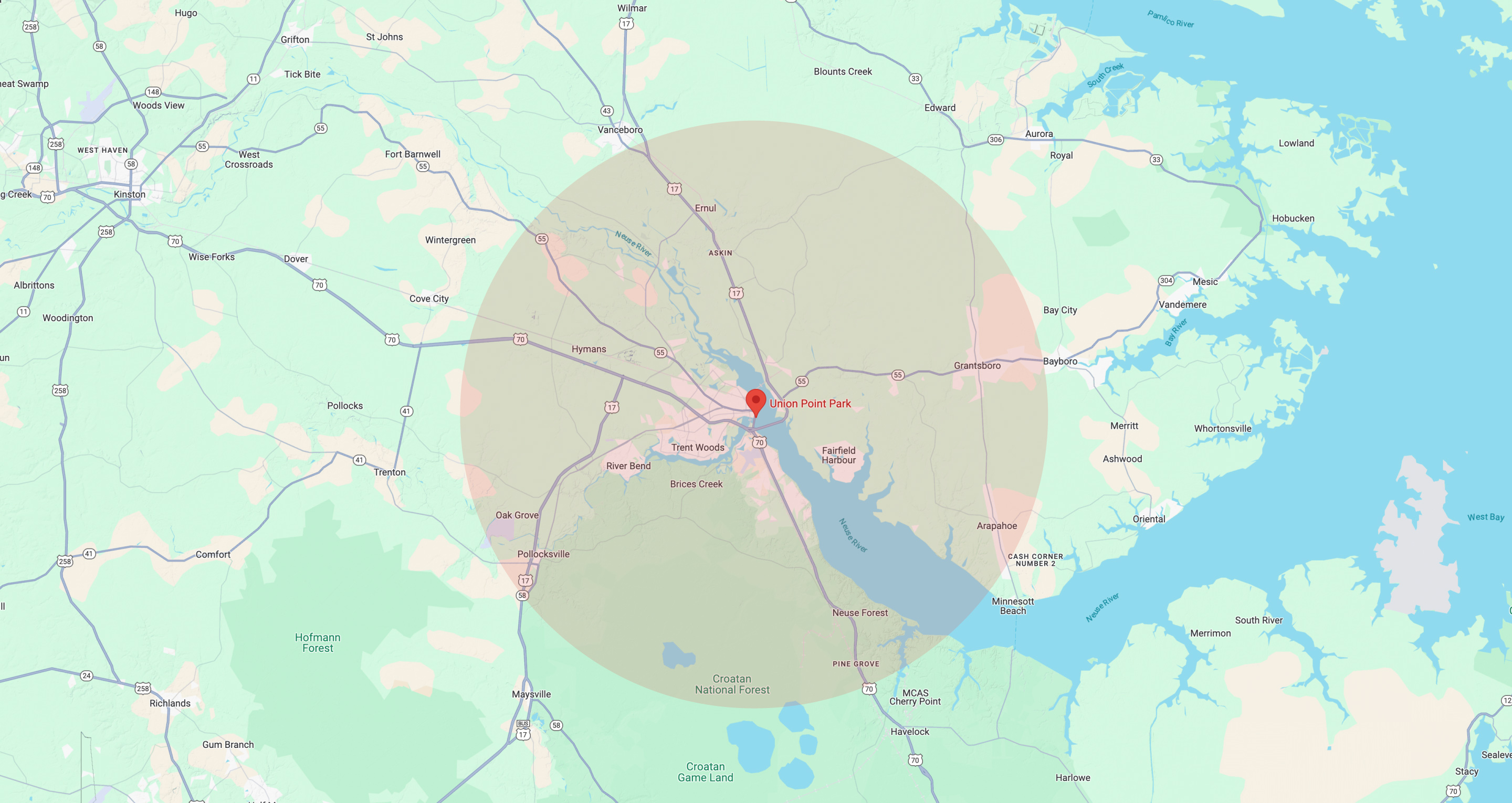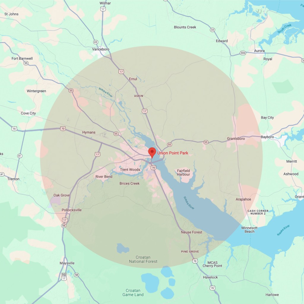 We service all areas within 20 miles of Union Point Park in downtown New Bern, North Carolina.
